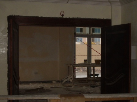 Doors fixing, roof tiles painting, ground floor hall tiling in progress - 30 Aug 2010